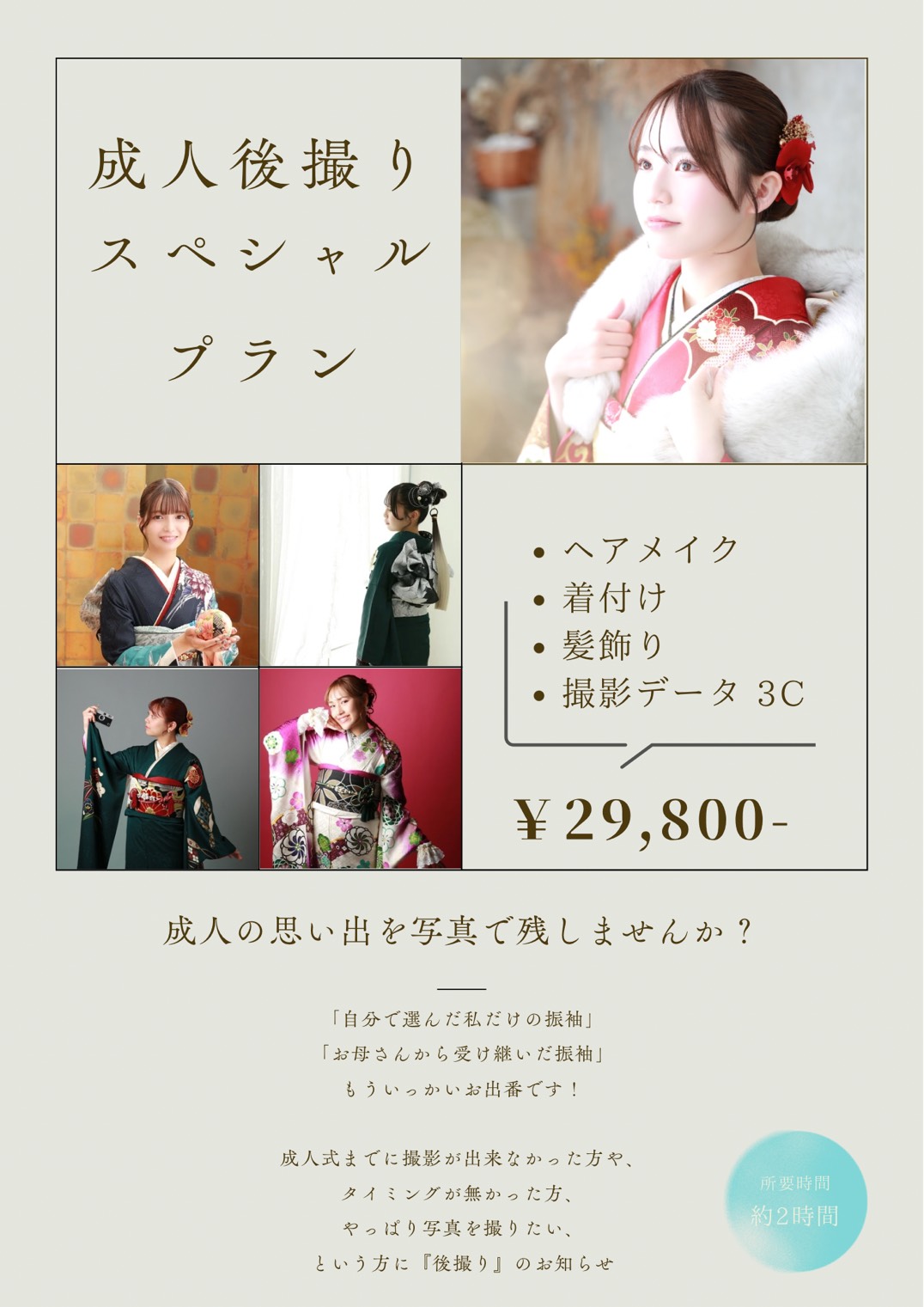「自分で選んだ私だけの振袖」 「お母さんから受け継いだ大切な振袖」 その美しい姿を、最高の形で残しませんか? 成人式までにお時間が取れなかった方やタイミングを逃してしまった方のために、 スタジオならではのこだわりを詰 […]